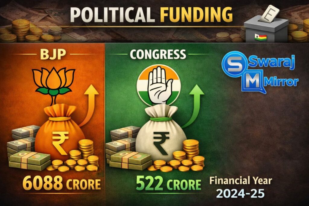 रिपोर्ट के अनुसार, BJP को 2024-25 में कुल ₹6088 करोड़ का चंदा प्राप्त हुआ, जबकि कांग्रेस को केवल ₹522 करोड़ की फंडिंग मिली।
